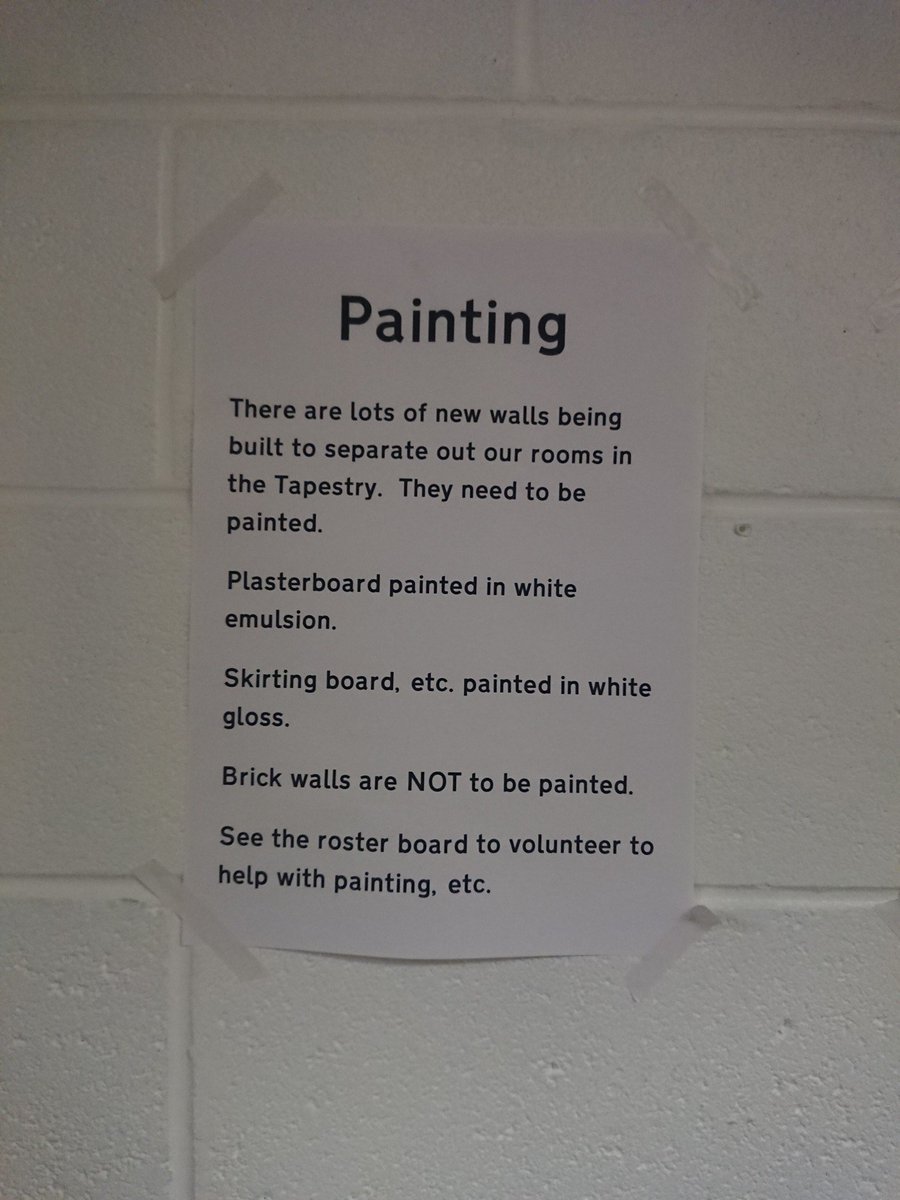 As you will no doubt have seen, we’re moving into the help wanted phase, so if you can pack, carry, paint, drive… then we want you!