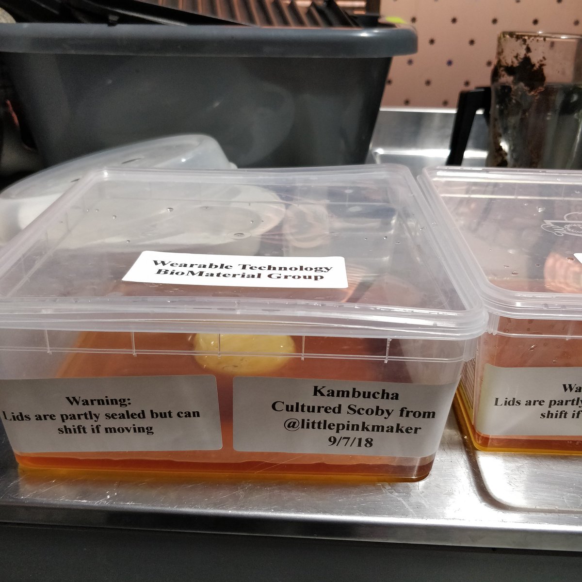 - Jackie Pease: Here’s some photos from tonight’s Wearable Tech meetup – making Kambucha with Ross Dalziel Hopefully in a couple of weeks we’ll have a biomaterial we can laser cut🤞#DIYbio #Wearables #weeknotes pic.twitter.com/SgikJdeI5F