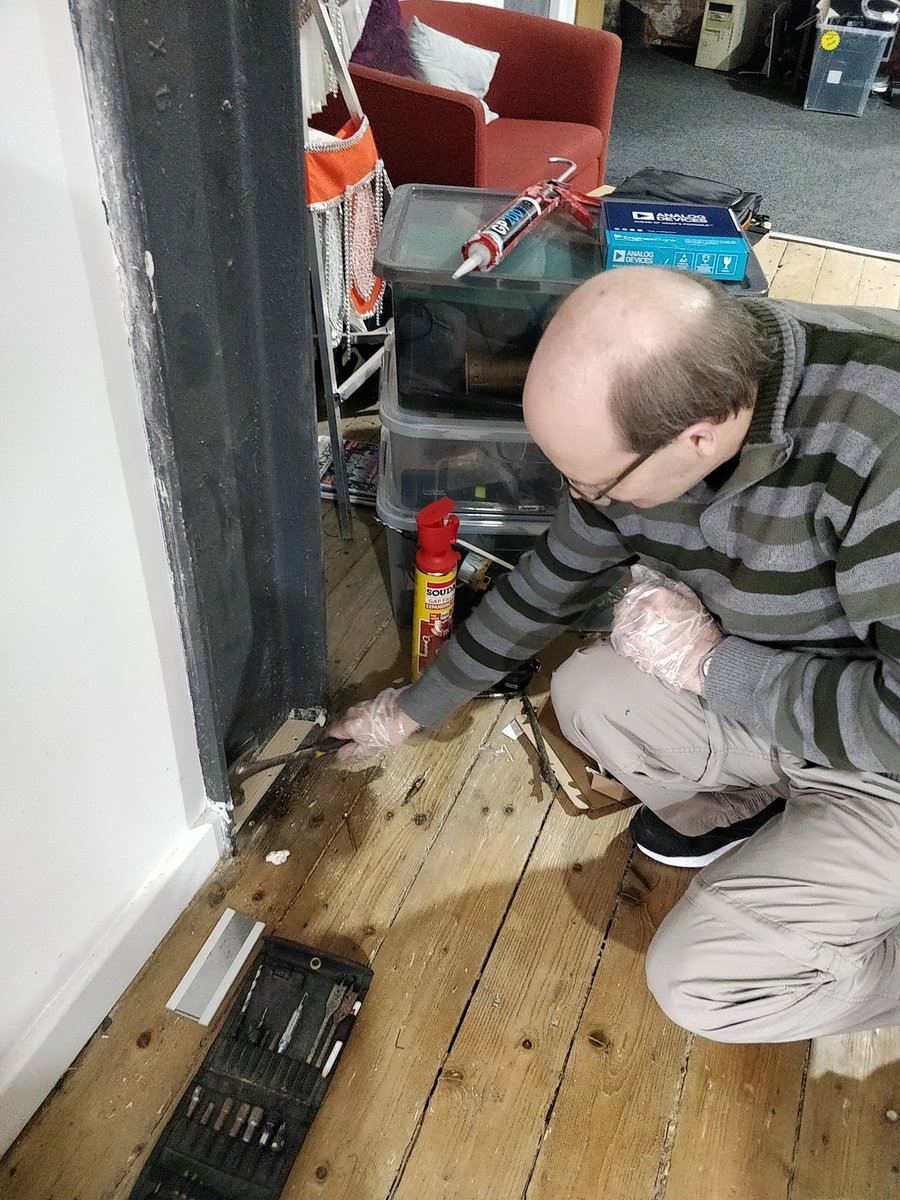 - DoES Liverpool: Mike G filling in a gap by one of the pillars at DoES Liverpool (it’s been causing an annoying draught) #weeknotes pic.twitter.com/GWpZwJcPQc