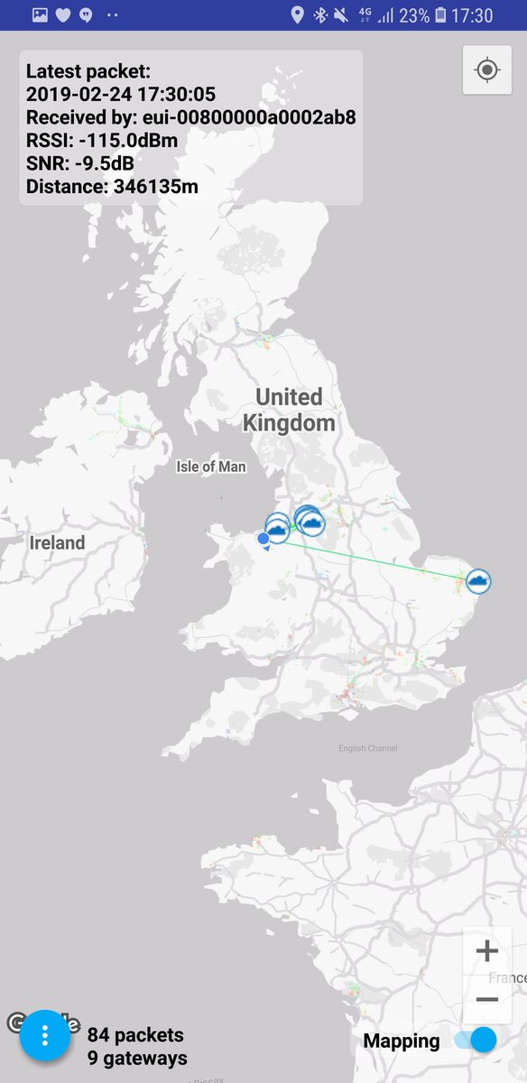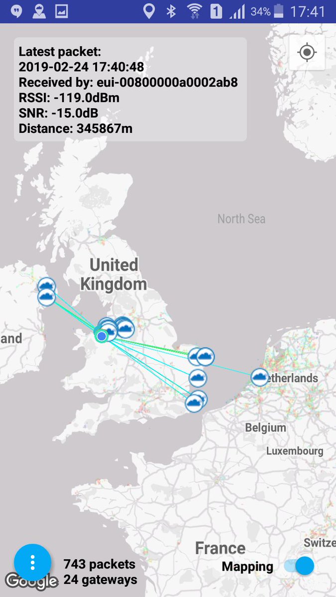 - John Cassidy: Sheffield Honey Co. Ian Horsey Pycom DoES Liverpool Tom Barnes The Things Network Garry Keogh JP Meijers ZS1JPM Alex Lennon Fred de Haro Ryan Walmsley Haha I was doing both on two nodes. It looks like the 537km to Delft on SF12 is correct after all.I also hit Ryan Walmsley gateway in Gt Yarmouth at 346km on SF7 and 4 other UK East Coast gateways further. Barham, Ramsgate, Felixstowe and Norwich.Adrian McEwen tuned #weeknotes pic.twitter.com/a26sVYTXdS