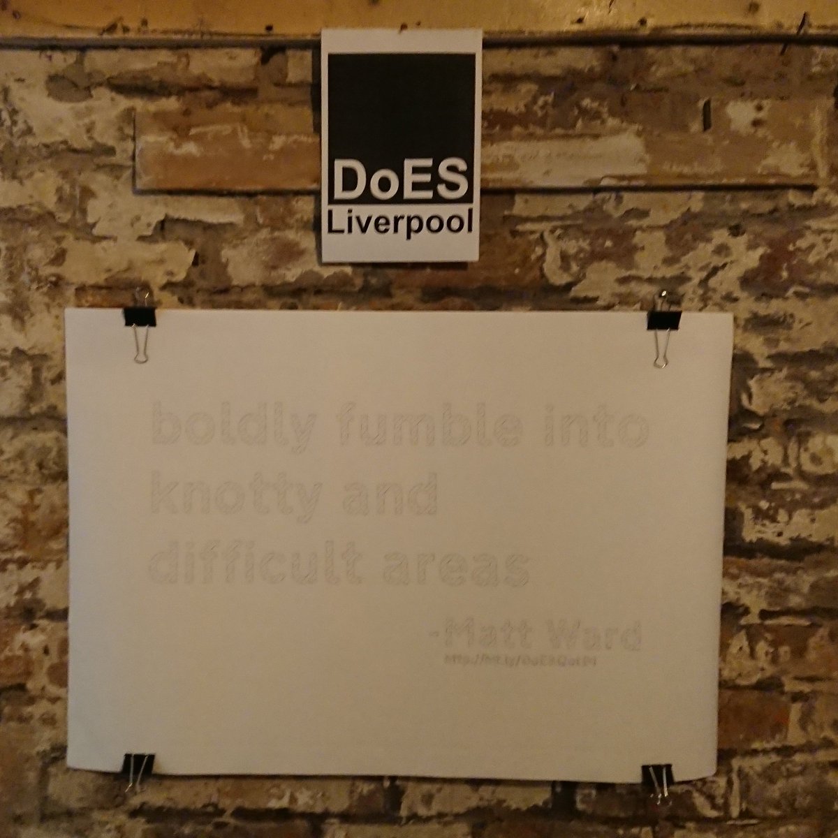 - Adrian McEwen: Have hung the #DoESPlotterQuote poster I made t’other weekend, in the entrance stairwell of DoES Liverpool #weeknotes pic.twitter.com/cA7qRtSdba