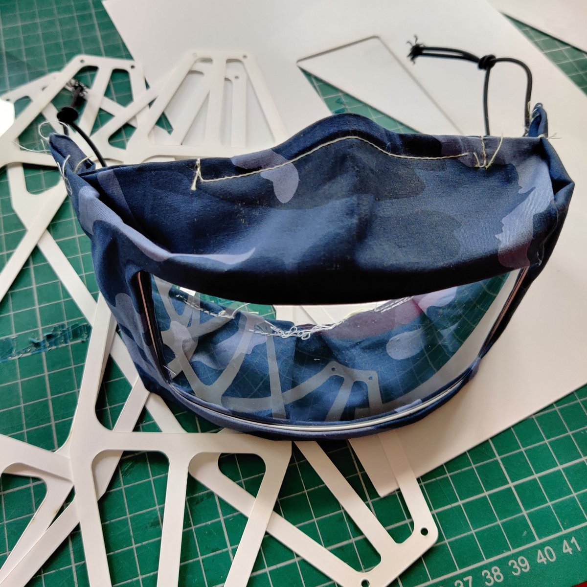 - Jackie Pease: Trying out a laser cut polypropylene ‘skeleton’ for a facemask to hold the clear panel away from the face – seems promising #weeknotes pic.twitter.com/87nY6K9oOM